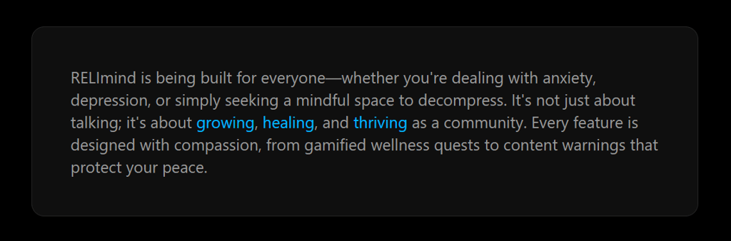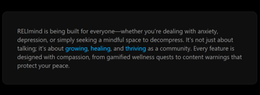 RELImind is actively being developed with more features on the horizon, including a relaxing ambient music player, guided meditation sessions, journaling tools, and deeper community features. Stay tuned.