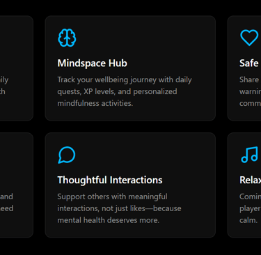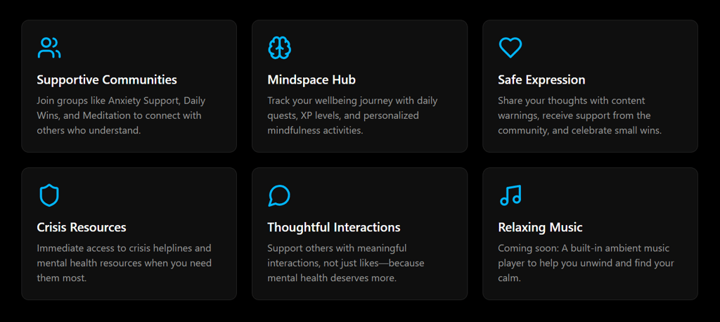 A social platform where mental health matters. A safe corner of the internet to share your struggles, support others, and most importantly, improve your situation together.