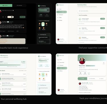 Explore the platform's interface designed to be calming, intuitive, and focused on your wellbeing.